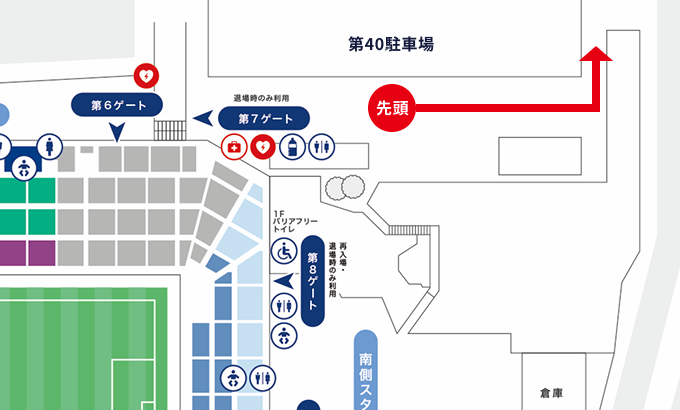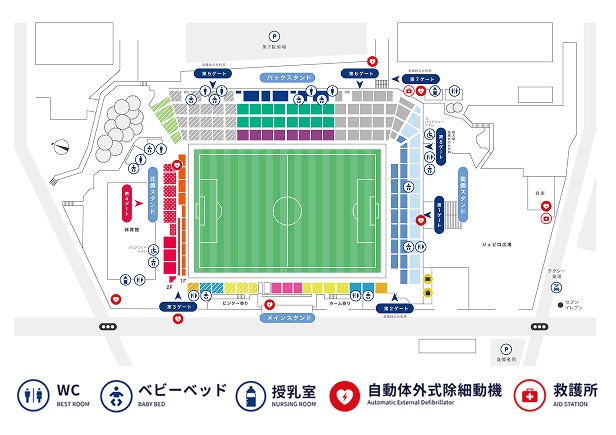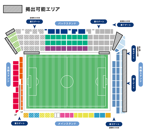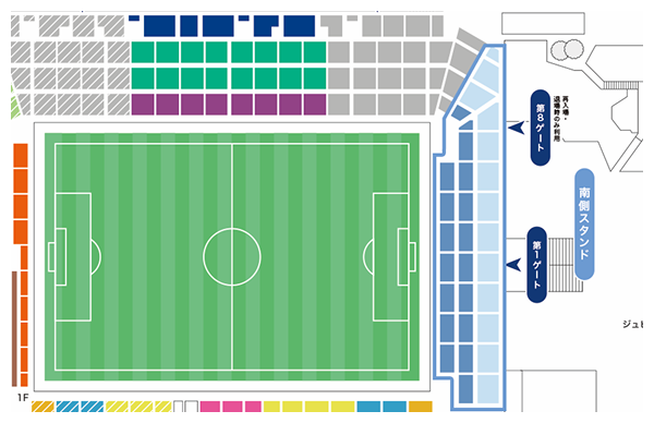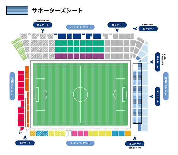 | 第3ゲート | ロイヤルシート、メインSS指定席、メインS指定席、ゴール裏B指定席、、ボックスシート5 | |